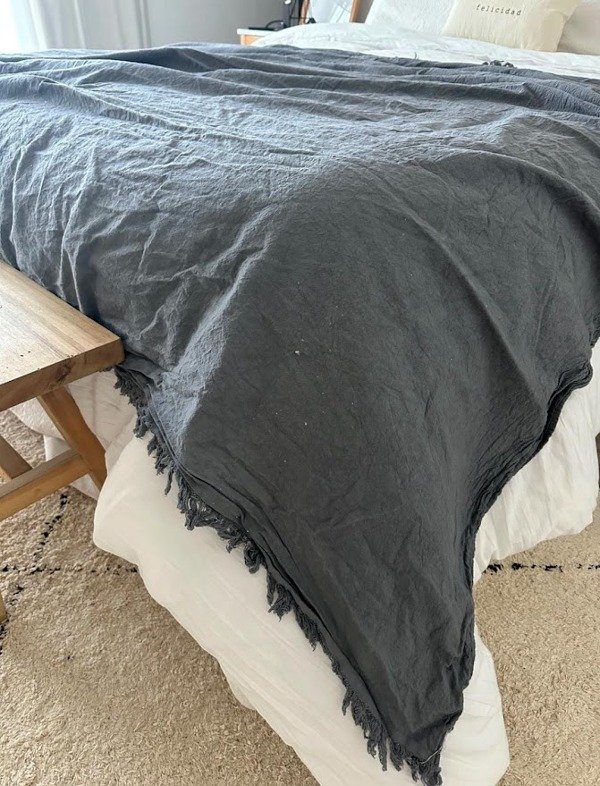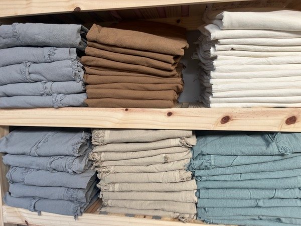 manta tusor con final de tela en flecos.